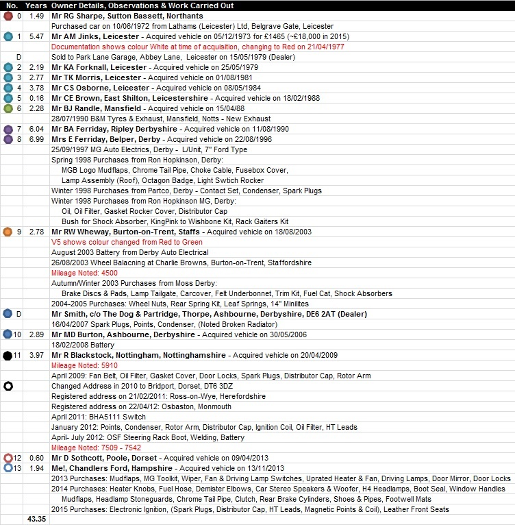This information was a real treat, as it allowed me to compile details of every single owner from new, where in the country the car resided, and some other interesting facts – starting with the colour!